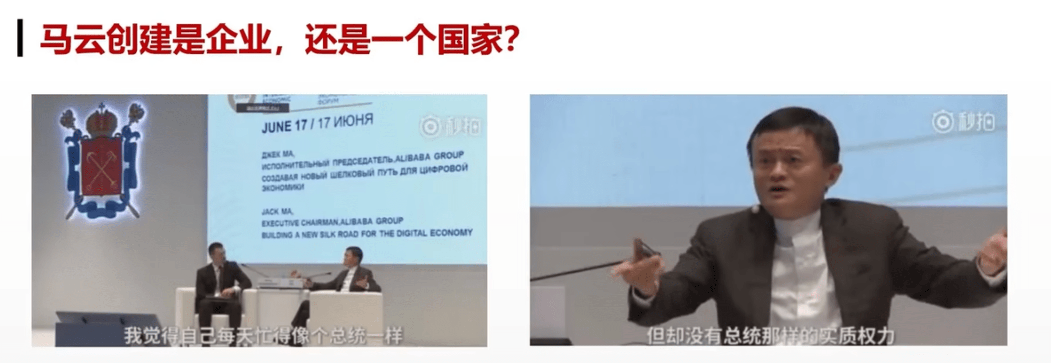 新零售(线上线下物流结合)、世界级贸易平台eWTP(WTO支持)、金融:用户、牌照、数据;、菜鸟、大数据、传媒、湖畔大学